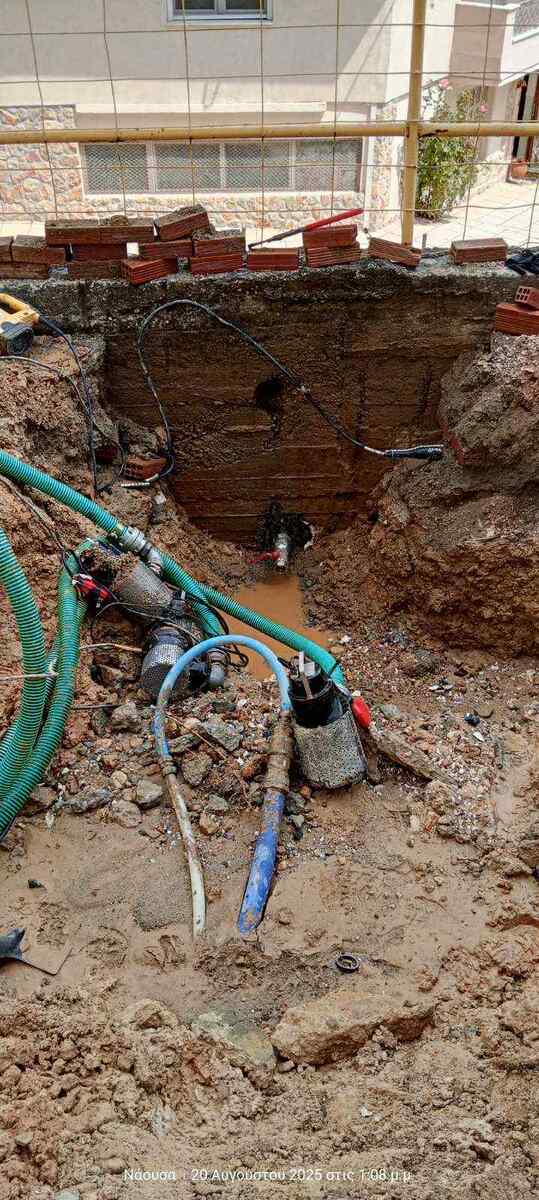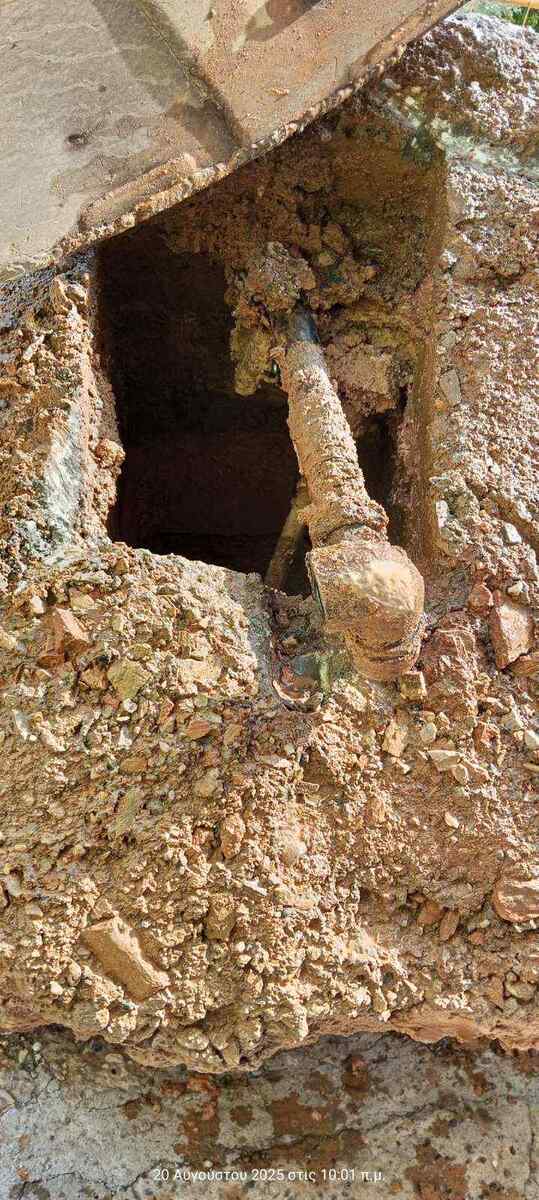Σωλήνας ύδρευσης σε βάθος 1,5 μ., πακτωμένος μέσα σε τοιχείο το οποίο συγκρατεί το πρανές της οδού Σπύρου Λαναρά. Μία διαρροή για την οποία οι περίοικοι διαμαρτύρονται για πάνω από εφτά χρόνια όπως μας ενημέρωσαν!
