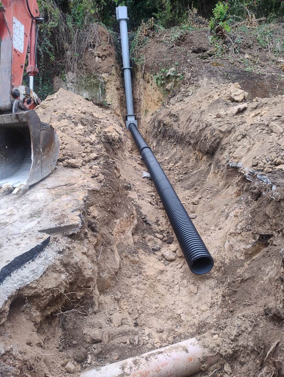 Στο φωτογραφικό υλικό που παρατίθεται βλέπουμε την τοποθέτηση αγωγού σε ένα σημείο στο οποίο για χρόνια υπερχείλιζαν τα όμβρια ιδιαίτερα μετά από βροχοπτώσεις.