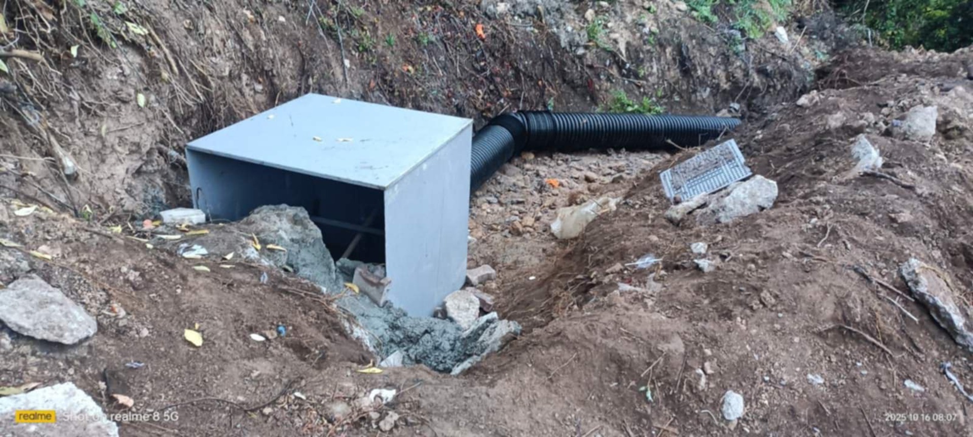 Μία διαδρομή 43 μ. στην οποία τα όμβρια διοχετεύονταν σε ανοιχτό αυλάκι όπου διάφορα φερτά υλικά (πέτρες, κλαδιά ακόμη και σκουπίδια) περιόριζαν τη ροή του νερού με αποτέλεσμα να εμφανίζεται συχνά πλημμυρικό φαινόμενο με όλα τα προβλήματα που αυτό συνεπάγεται στη διέλευση των οχημάτων αλλά και στα παρακείμενα αγροκτήματα της περιοχής.